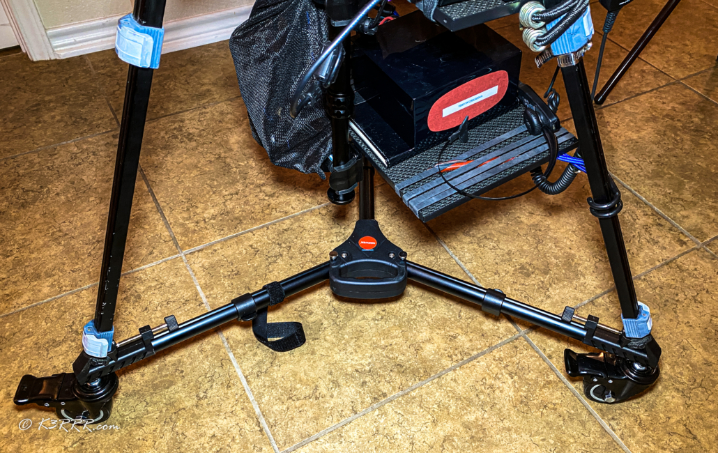 Nota Bene: The wheels on this tripod are excellent for smooth surfaces like wood and tile floors, concrete sidewalks – even roads, but not so much for navigating across uneven terrain. Some of you can probably figure out how to put wheels on a tripod that are more like the massive wheels on the beach wagons.