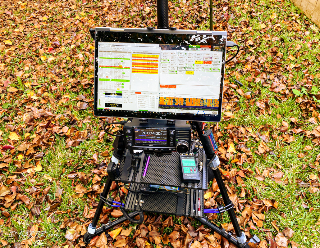 To power it all? My Bioenno battery system and a 200A power analyzer to keep track of usage. For antennas, I used a Chameleon magnetic loop inside the house and a Chameleon MPAS 2 vertical when outside. And yes, I made global contacts sitting on my couch with this setup!